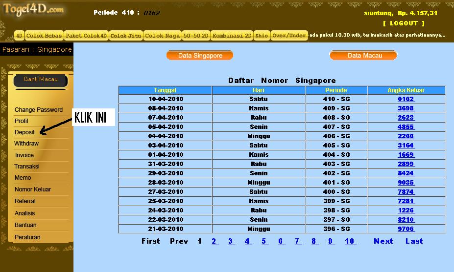 Bandar Togel Online dan Situs Slot Casino Terpercaya. Mbak4d adalah agen resmi situs togel online terpercaya yang memiliki banyak pasaran togel seperti togel wap hongkong/sidney & hongkong terbaik dengan diskon terbesar. Tentunya anda juga bisa mendapatkan info result, buku mimpi dan prediksi togel 4d singapore hari ini. Hadiah Togel 2D: ๐ธ 100rb: Hadiah Togel 3D: ๐ธ 3,2 Juta: Hadiah Togel 4D: ๐ธ 10 Juta: Situs Bandar Togel Terpercaya & Terlengkap di Asia 2023 Mudah Jackpot Terbesar.. Diskon pasaran togel online terbesar; Jumlah hadiah jackpot tertinggi; Metode transaksi yang mudah & terlengkap;